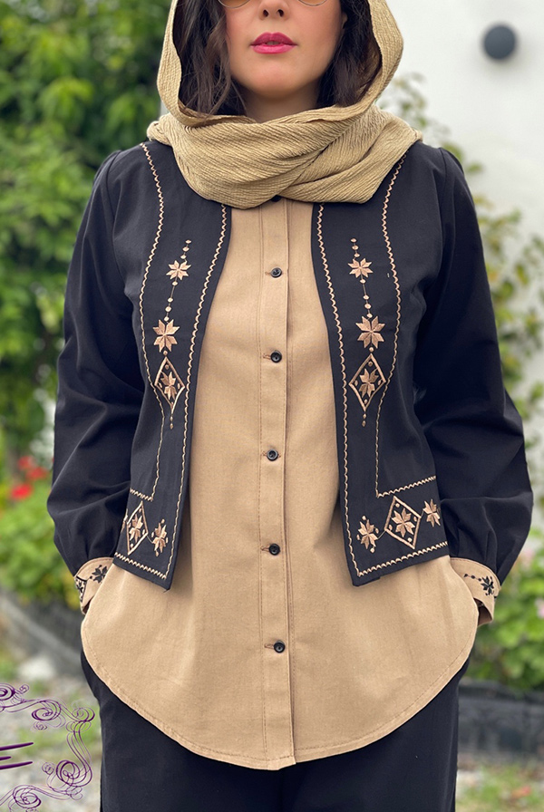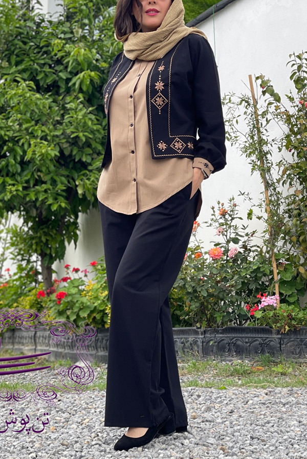 سه تیکه کت کوتاه - شومیز دکمه دار آستین حلقه ای - شلوار تمام کش